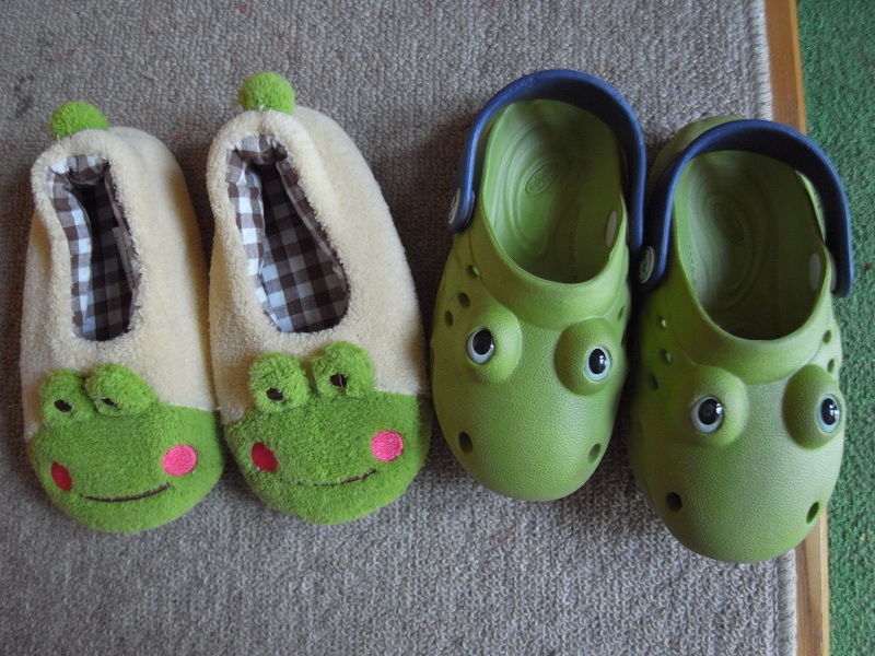 右が今年妹が買ってくれたカエルサンダル。Polliwalksってちょっと有名な(?)やつ。