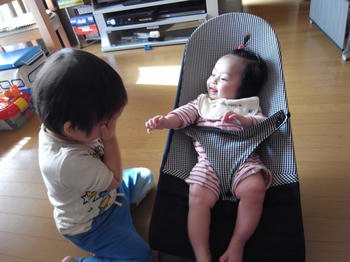 家事やってる時に泣いてるきーちゃんにいないいないばあやってきて~と言うとやってくれます。