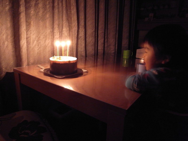まだロウソクを消すことは出来ないけど見つめておりました。(暗いからぶれてます)