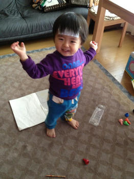最近えんぴつとかベビーコロールとかでよく落書き帳に落書きしててぐちゃぐちゃとか点とかしか書いてなかったんですけど急に丸を書きだしたのでビックリ。嬉しかったです。