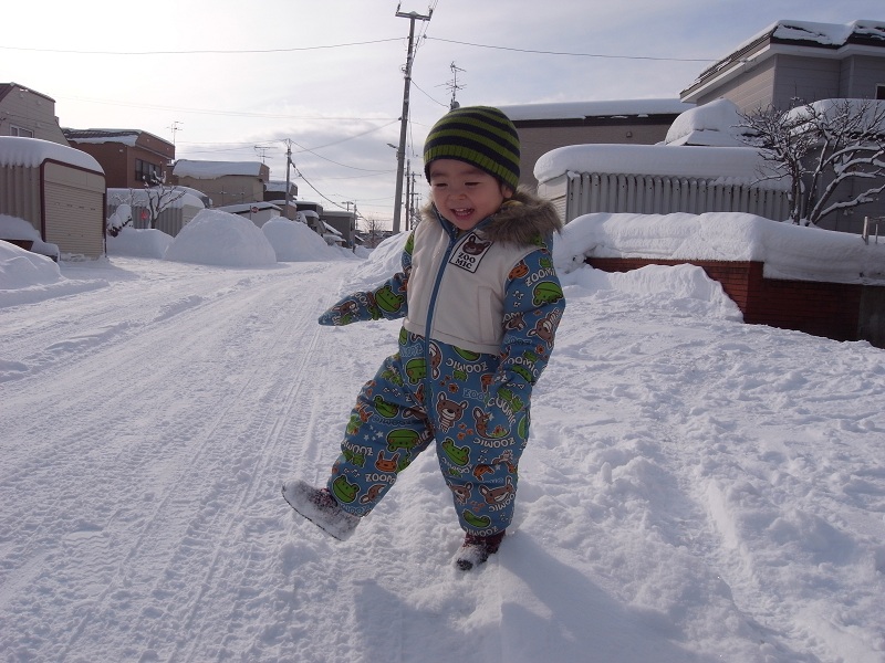 今日はどうしても外に出なきゃいけなかったので(年賀状を出す為に…)我が子に去年買ったボディスーツを着せて近所のコンビニまで歩きました。