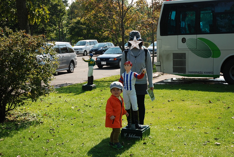 馬のテーマパークだけあって駐車場に騎手がいっぱいいる。