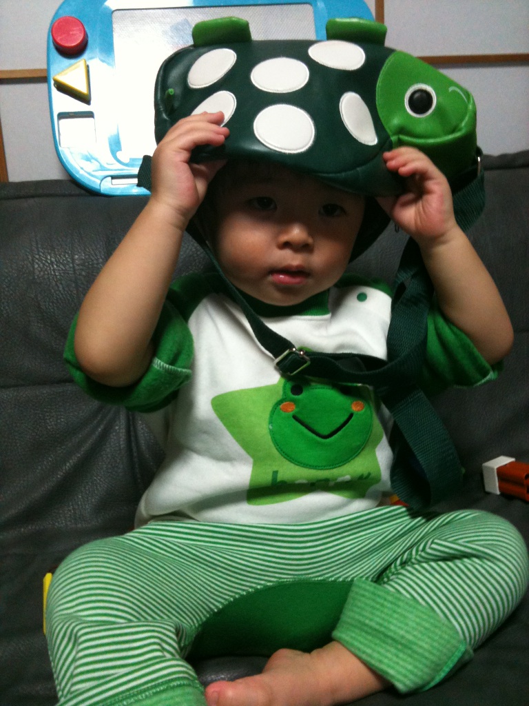 ↑はわたしの使ってないカバン(カメ)をあげてみたら頭にまずかぶる。