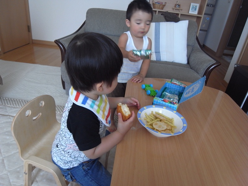 ・お菓子の好みも出てきた。ビスケット系よりもしょっぱい系を食べたがる。
