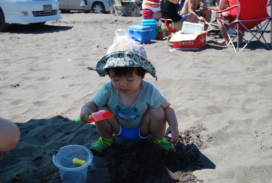 隣でBBQをしているカップル二組がいてそこに近寄ったりして戻って砂遊びをする、を繰り返してましたw