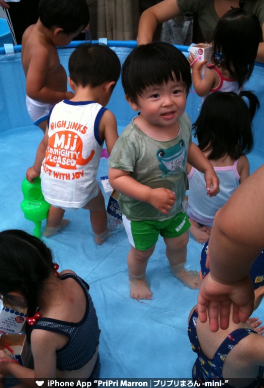 職員の人達が小さいプールを作ってくれてたのでさっそく我が子をin。