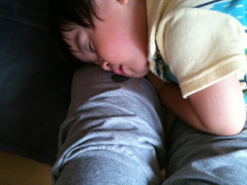 わたしの膝の上で落ちたのでよだれが…。