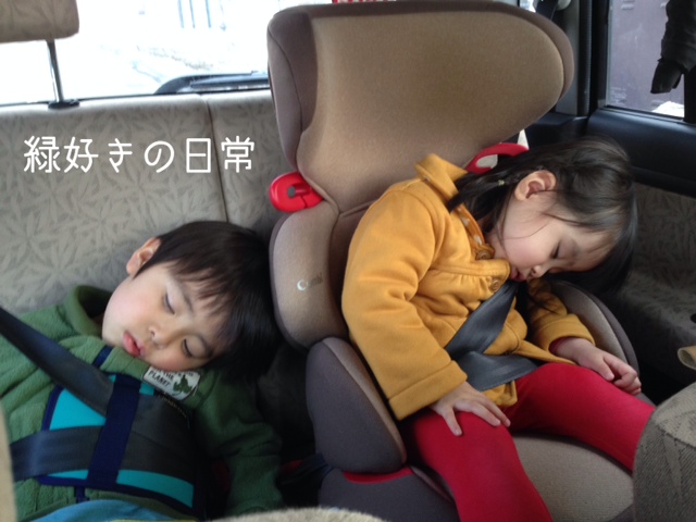 2人ともよく遊んで車が走り始めたらすぐ落ちてたw