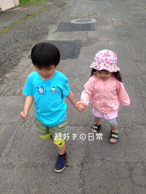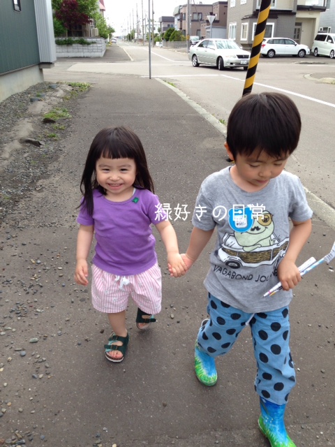 園バス停までの道は最近2人で手をつないで行ってもらってます。