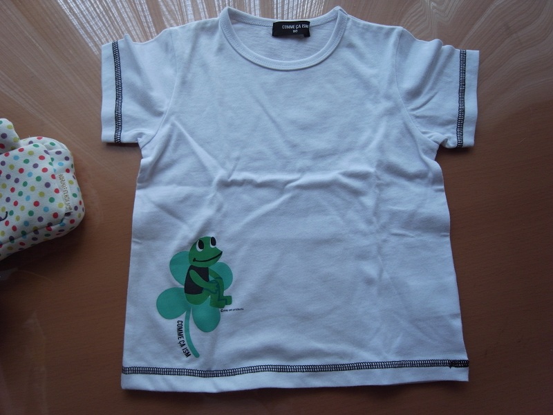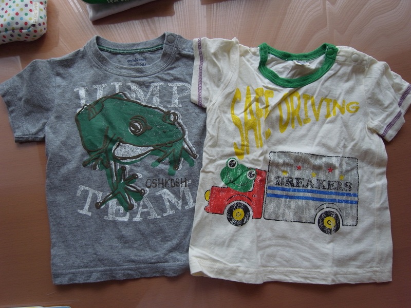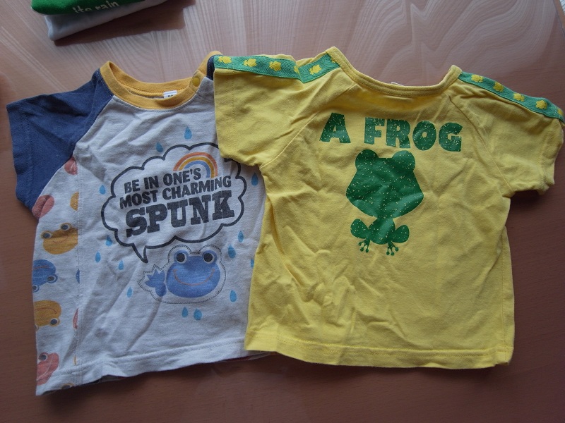 新生児用のカエルTシャツも持ってたんですけどそれは確実に着れないサイズ…。それはほんとカエルの写真をプリントしたっぽいやつなので最高だったのに。
