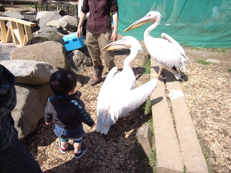 我が子、結構ぐいぐい行ってたらペリカンにくちばしで攻撃されて半泣き…。