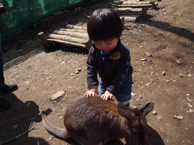 我が子もワラビーにさわりまくり。