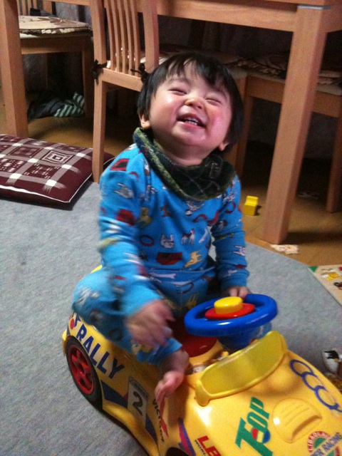 母が近所の方から頂いた車にどや顔の我が子。