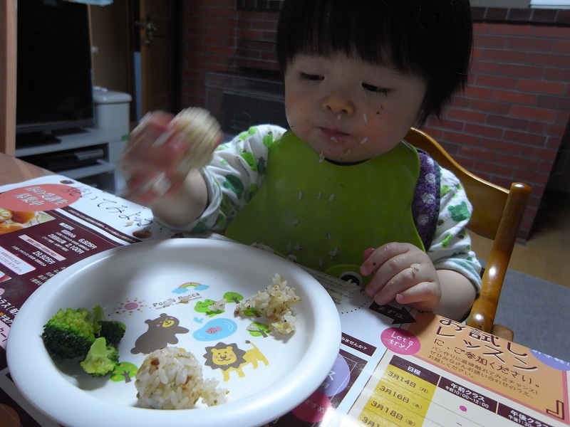 根気がいるのかな…手づかみのパンは食べてくれるので手づかみ食べをさせた方がいいのかな。