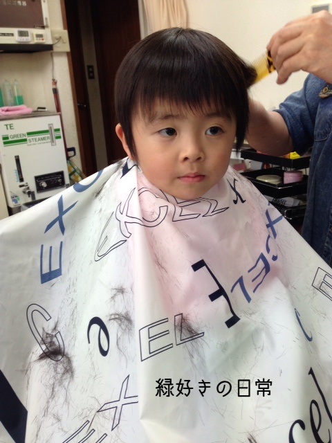 昨日は夫の床屋に息子を連れていって髪の毛切ってもらいました。