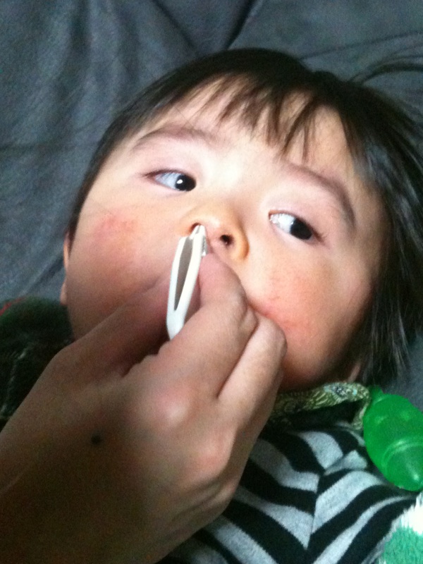 鼻くそ取られ中の我が子。
