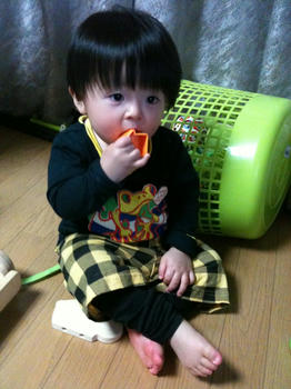 手づかみ食べがうまくなってきた感があるけど…どうだろう…。飲み込んでないのに更に口に詰め込む傾向が。一口分ずつあげてたけどそれじゃあ成長しないかなぁと一気にあげてみたり…。