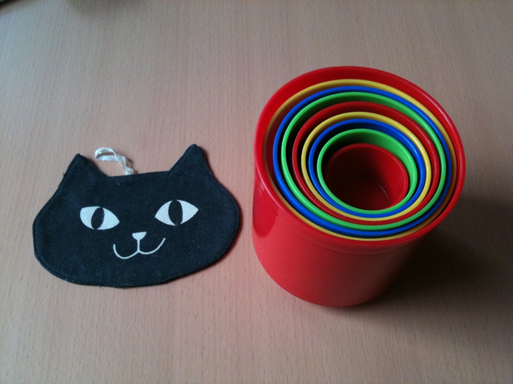 会場にはバスで行ったのですが丁度いい時間のがなくて早めに言ってデパートの子供服とかおもちゃ売り場を見てたらコップ重ねがあったので買っちゃいました。
