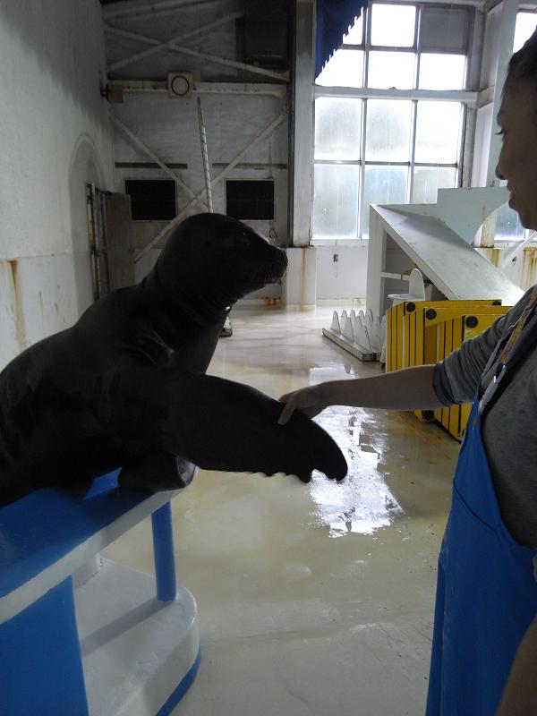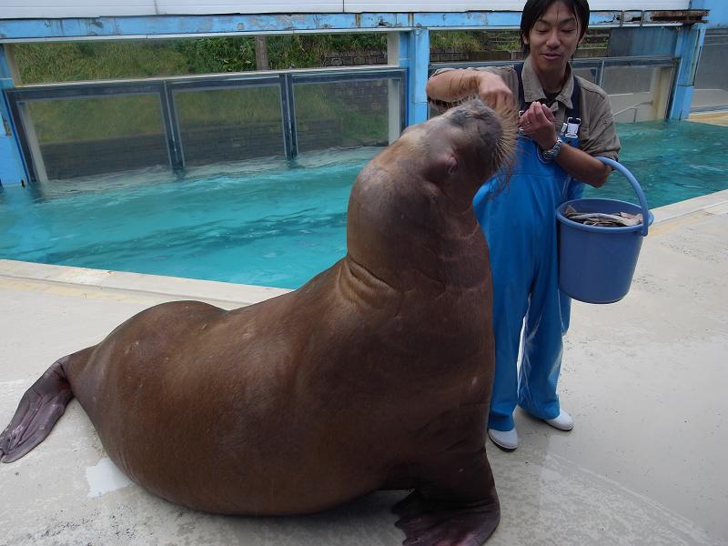 午後からは水族館の離れにあるイルカやセイウチのところで体験。