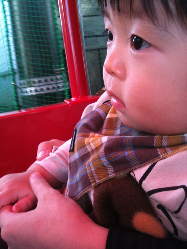 相席になった向かいの親子にニコニコしてた。汽車とか風景はこんな風に真顔で見てるだけだった…。