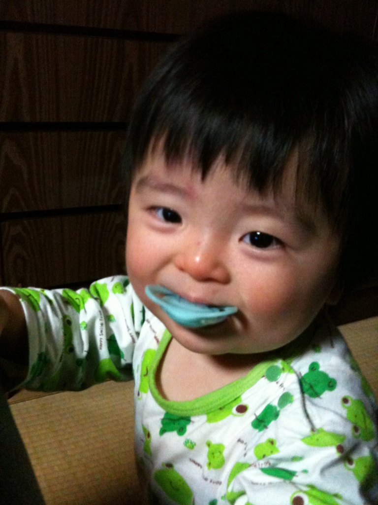 最近はおしゃぶりをこんな風↓にして寝かそうとしても寝ない。