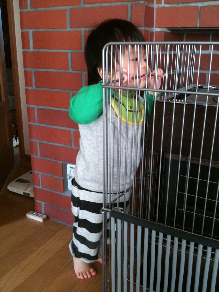 泣きそうな顔に… この後手つないで歩きましたが自分で歩いてもらおうと手を離すと泣き出してしりもちついて歩きませんでした~。倒れたからいいでしょ、って事で終了。