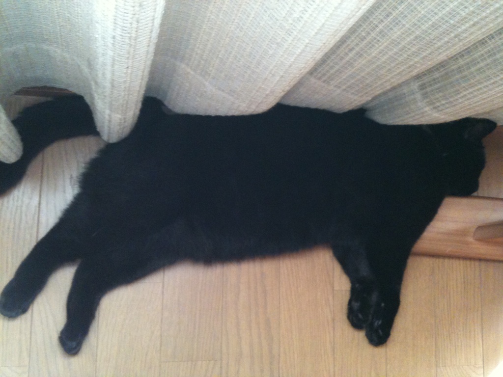 狭い隙間で寝るエコ。