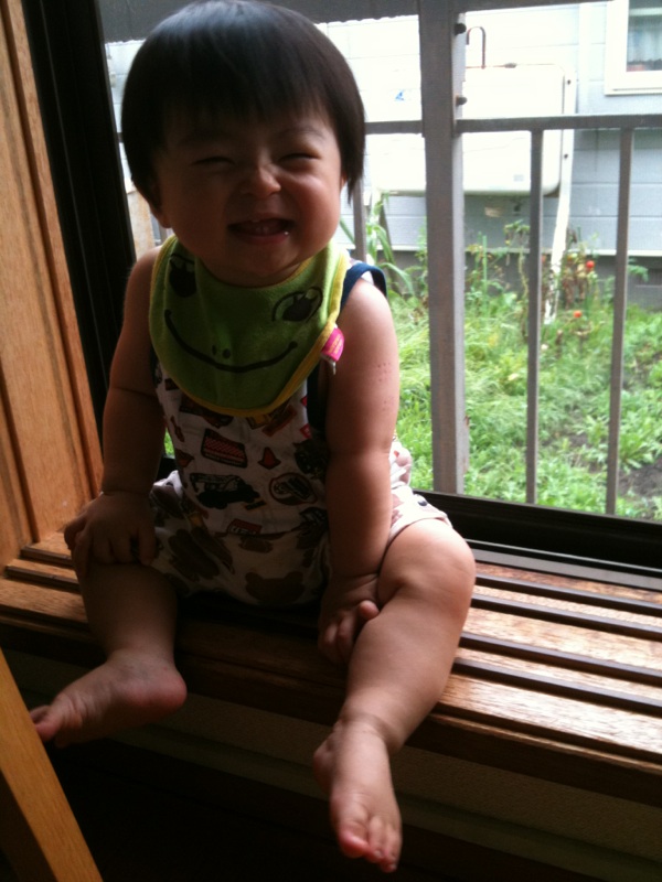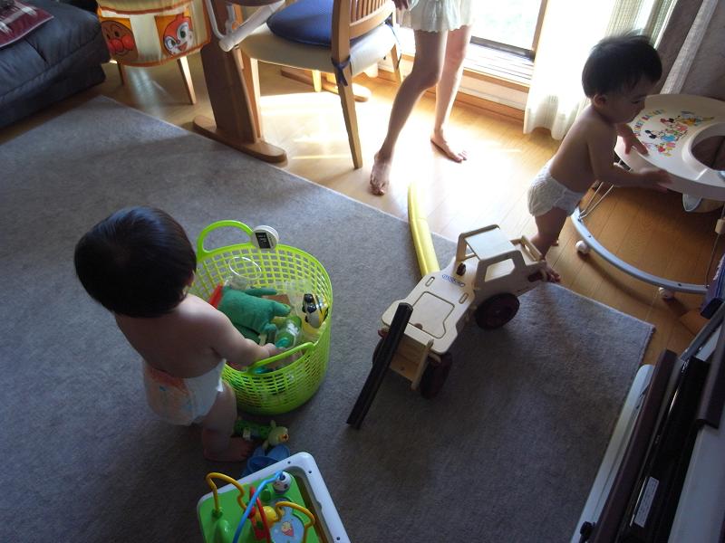 写真はその直後のおむつ一丁でうろうろする2人。