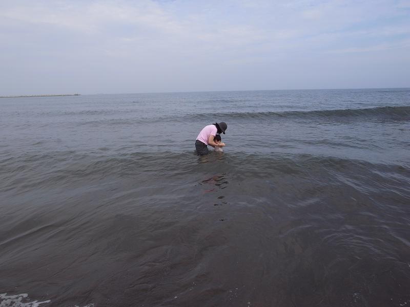 ちょっと冷たい海水にビックリしてた風だったけど泣かなかったなー。