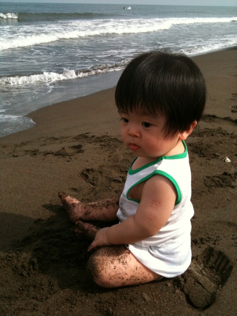 海よりも砂に興味があるみたいで一生懸命掘りまくってました。