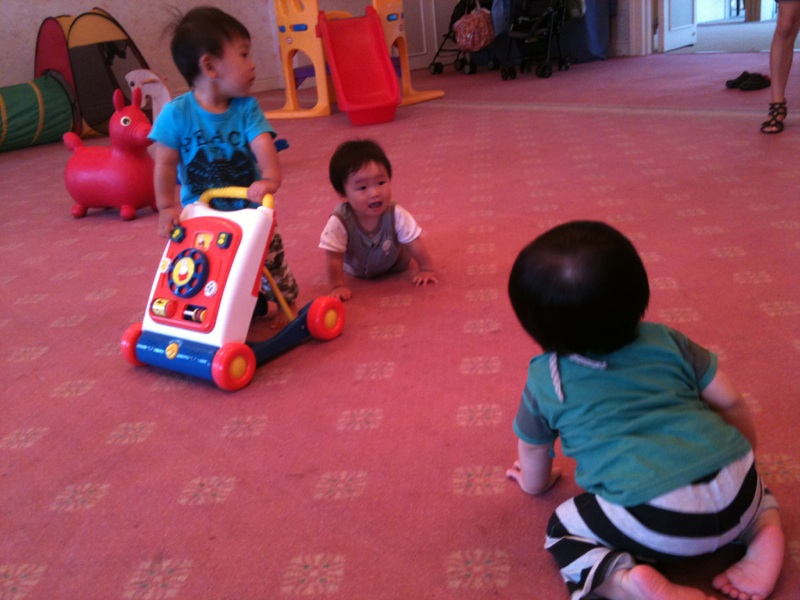 まだまだ交流のない年頃…1歳2ヶ月の子はつい1週間前から少しずつ歩き出したそうで危なっかしく歩いてました。みんな自由に遊んでたなぁ。かわいかった。