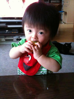 ビックマックをかじる我が子。