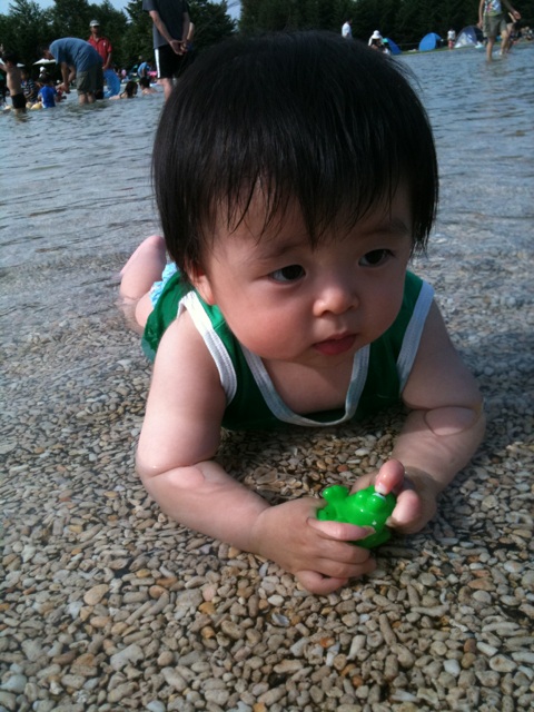 だけど後半は積極的に深いところに行こうとしたりしてビックリしました。深いといっても大人のひざ位までしかないんですが。