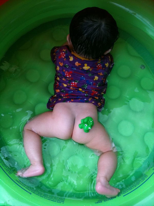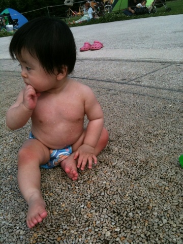 後半は水遊び用のオム一で遊ばせたり。