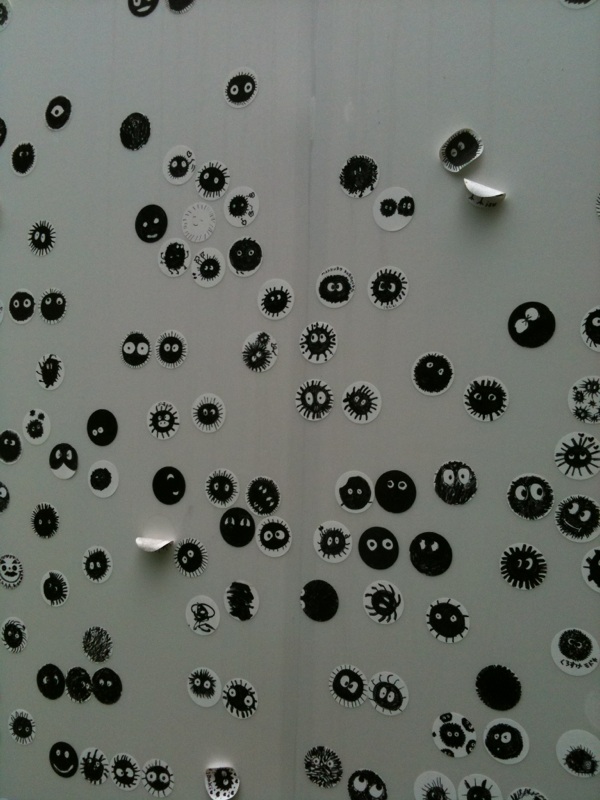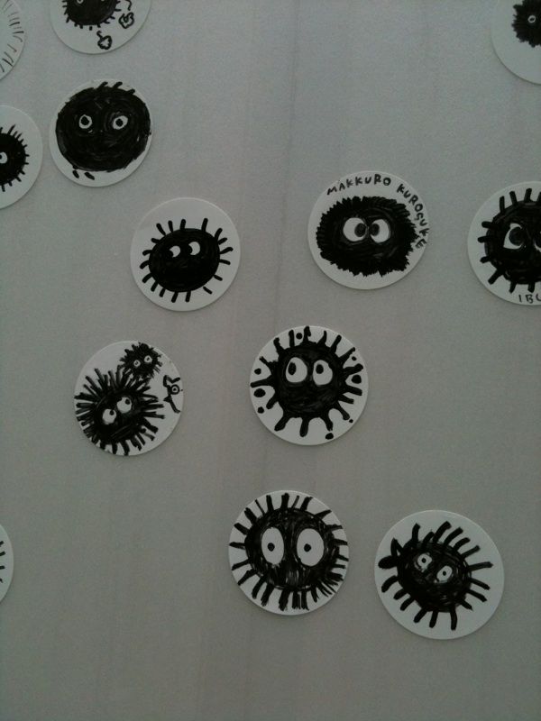 ↓これは会場の外にあった自分で書いたまっくろくろすけで壁をうめつくそう、というもの。わたしも参加。