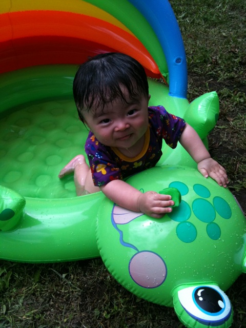 3連休中は結構蒸し暑かったんでプールで遊ばせたり。