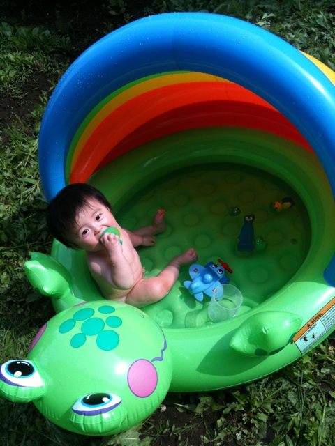 今日は夫休みという事でせっかく買ったプールで水遊びー!