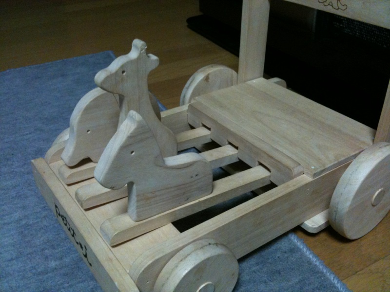 夫と「なんかこれ夫なら作れそうだよね」って言ったら「作れるよ」って返ってきて、だったらカエルがいい!ってなって休みの日に作ろうかーって話してます。カエルのカタカタ…手押し車…最高だ!
