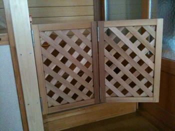 ガーデニングの木枠の夫お手製ベビーゲート。