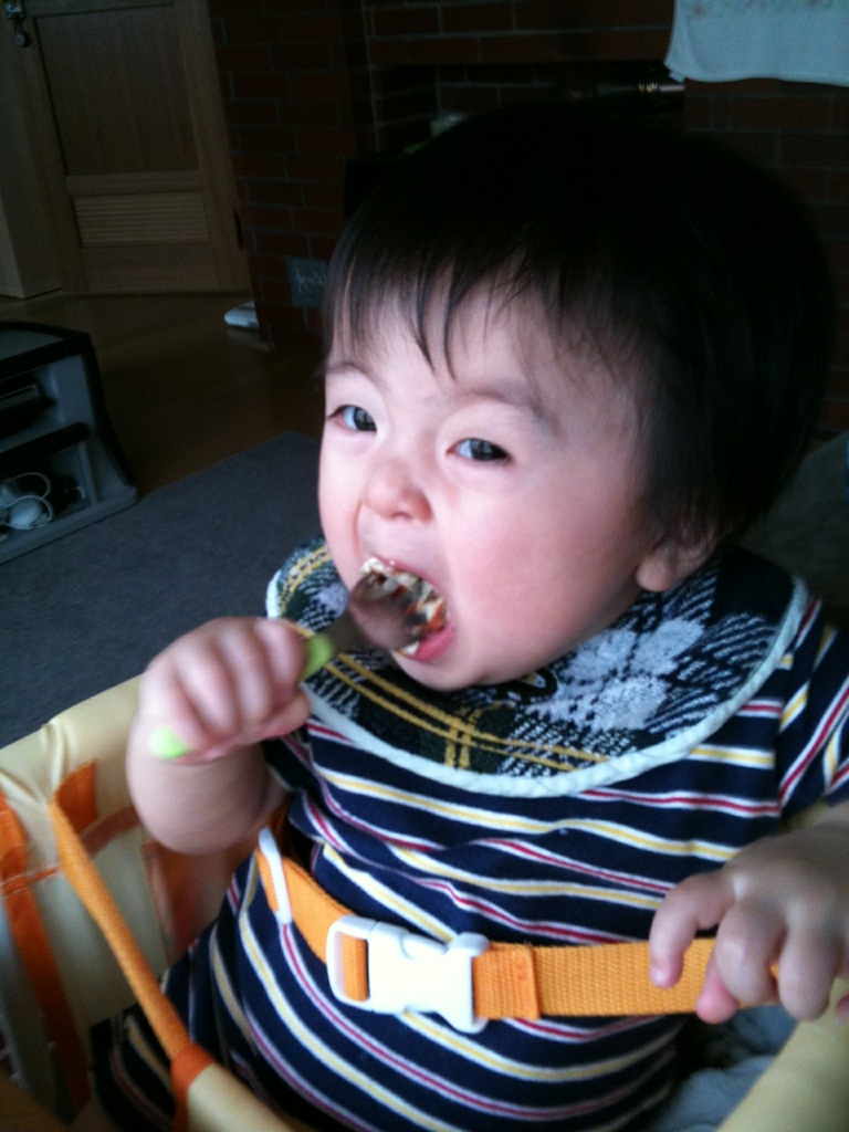 手づかみもさせてみたりしてますがまだにぎりしめちゃうだけであんまり食べれないです。手づかみの練習ってどうやるんだろう…。自然に食べるようになるのかなー。