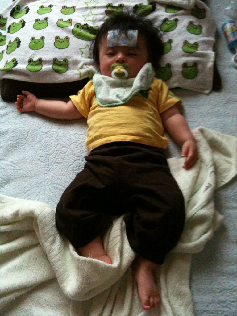 前回は次の日にすぐ下がって元気になったので今回もそうだといいなー。いつも良く寝るゆう君は昨晩何回も起きて寝返りうってたんですよね。きっと夜から調子悪かったのかなー。