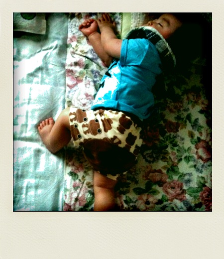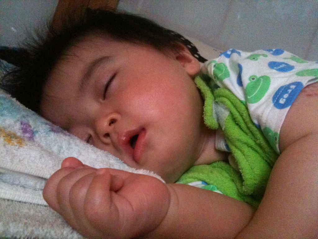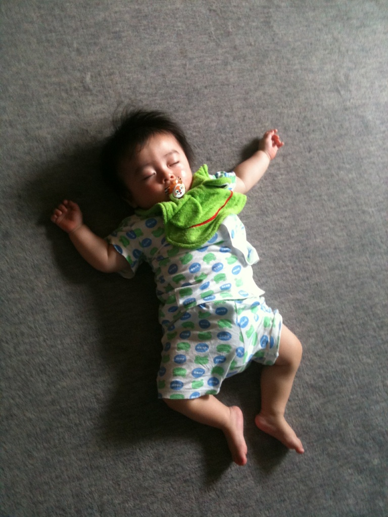 寝不足でお昼前に力尽きた様子の我が子。