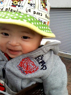 髪の毛が帽子みたいになった我が子。