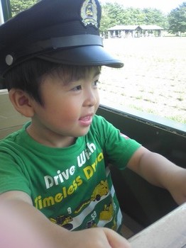 この写真は近所の公園の電車での一コマ。公園内を1周する小さな電車があるんです。